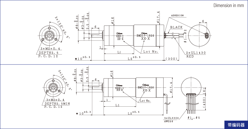 | 长度[mm] (马达+减速机+编码器=L3) |