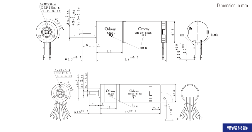 | 长度[mm] (马达+减速机+编码器=L3) |